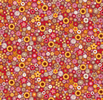 This cotton floral print fabric includes the colours shades of brown, orange yellow, red and green.