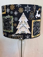 This Christmas themed shade features Christmas trees, reindeer & decorations. Colours include black, grey, green, white, silver & gold.
