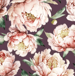 A stunning peony print on a cotton poplin fabric. Includes the colours shades of purple,green and pink and cream/yellow.