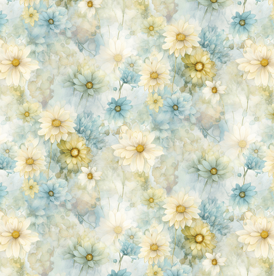 This pretty floral shade includes the colours shades of cream, yellow and blue.