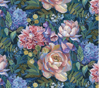 This is a stunning floral print including the colours, shades of blue and pink and green.