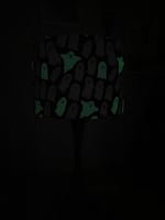 This ghost print glow in the dark fabric includes the colours, black, and white.