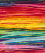 This stunning handpainted print fabric includes the colours, shades of red, pink, purple, blue, green, yellow, and orange.