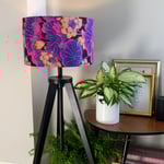 This is a striking floral lampshade including the colours black, blue, brown, pink, orange and purple.