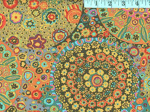 This is a beautiful print with a circular pattern, including the colours brown, orange, red, blue, green, ochre and purple.