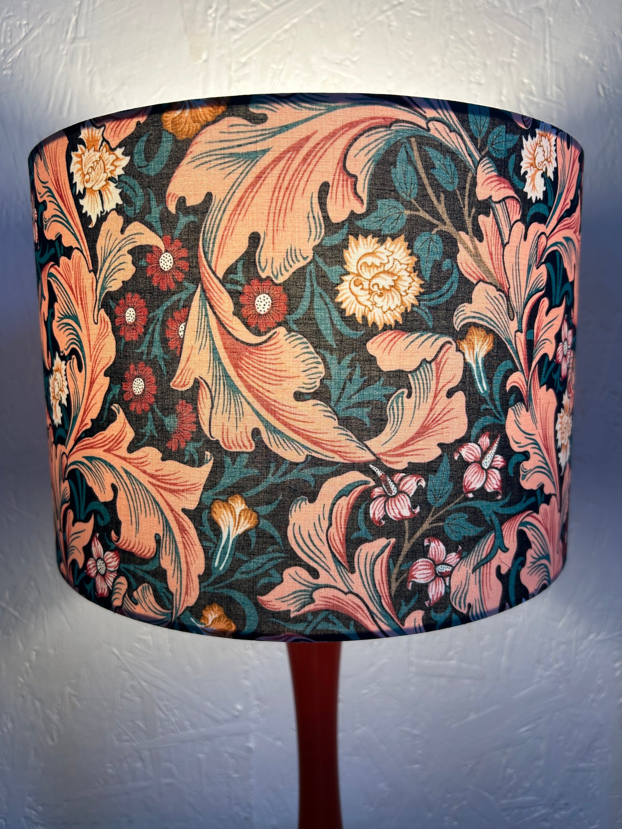 Pattern placement may vary from the image provided, but great care and attention will be taken to ensure an attractive lampshade is produced.
