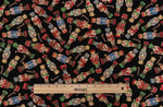 This cotton fabric print features a selection of colourful Nutcrackers. Colours include, black, gold, red, yellow, blue, white & green.