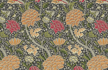 Designed by The Original Morris & Co., this printed cotton fabric includes the colours shades of green, yellow, red, grey and white.