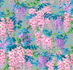This beautiful floral pattern fabric includes the colours grey, pink, purple, green & blue.