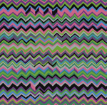 This trendy print fabric includes the colours, pink, blue, purple, green, black and grey