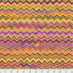 This trendy print fabric includes the colours, shades of yellow, green, black, pink, purple and orange.